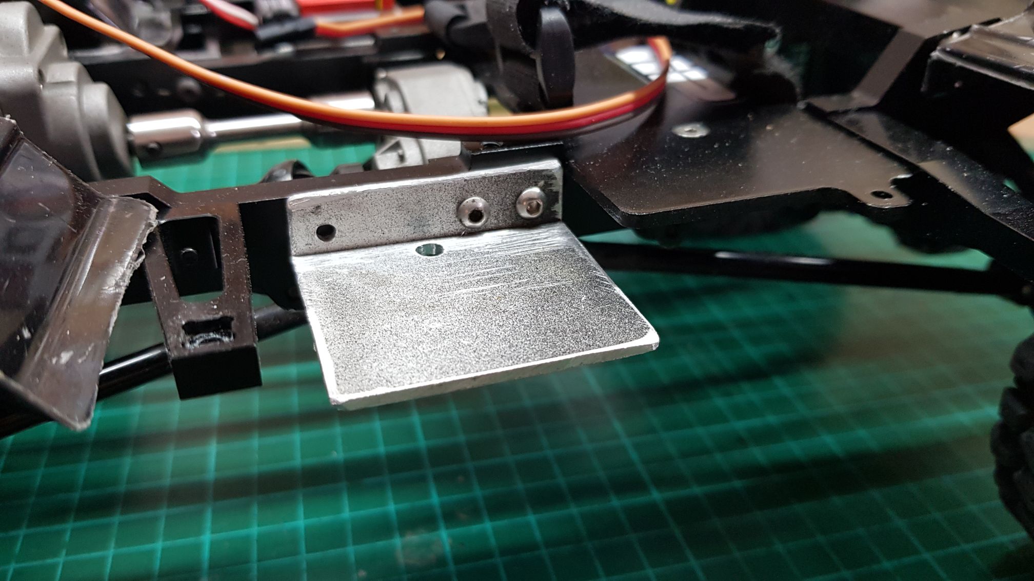 First things first. Two simply brackets to mount the ESCs on. The reason why the ESCs get their own brackets is because the originally designated space for the ESC will be used up by the servo winch.
