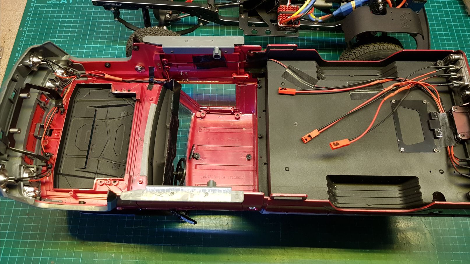Since the body is hinged onto the chassis at the back, it was best to channel all wires to the rear of the body, where I can simply pull out the 3 plugs I have when I need to remove the body completely from the chassis.
