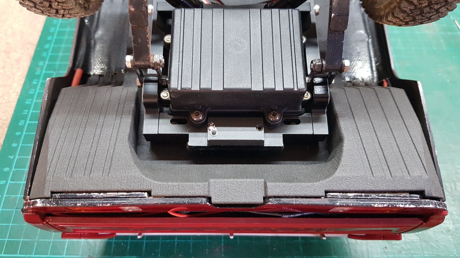 Here's an image of the skid plate installed. All nice and neat there now, and also protects the wires. Good.