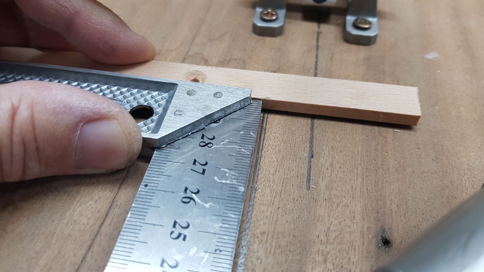 Using another straight edge, I placed it with the guide