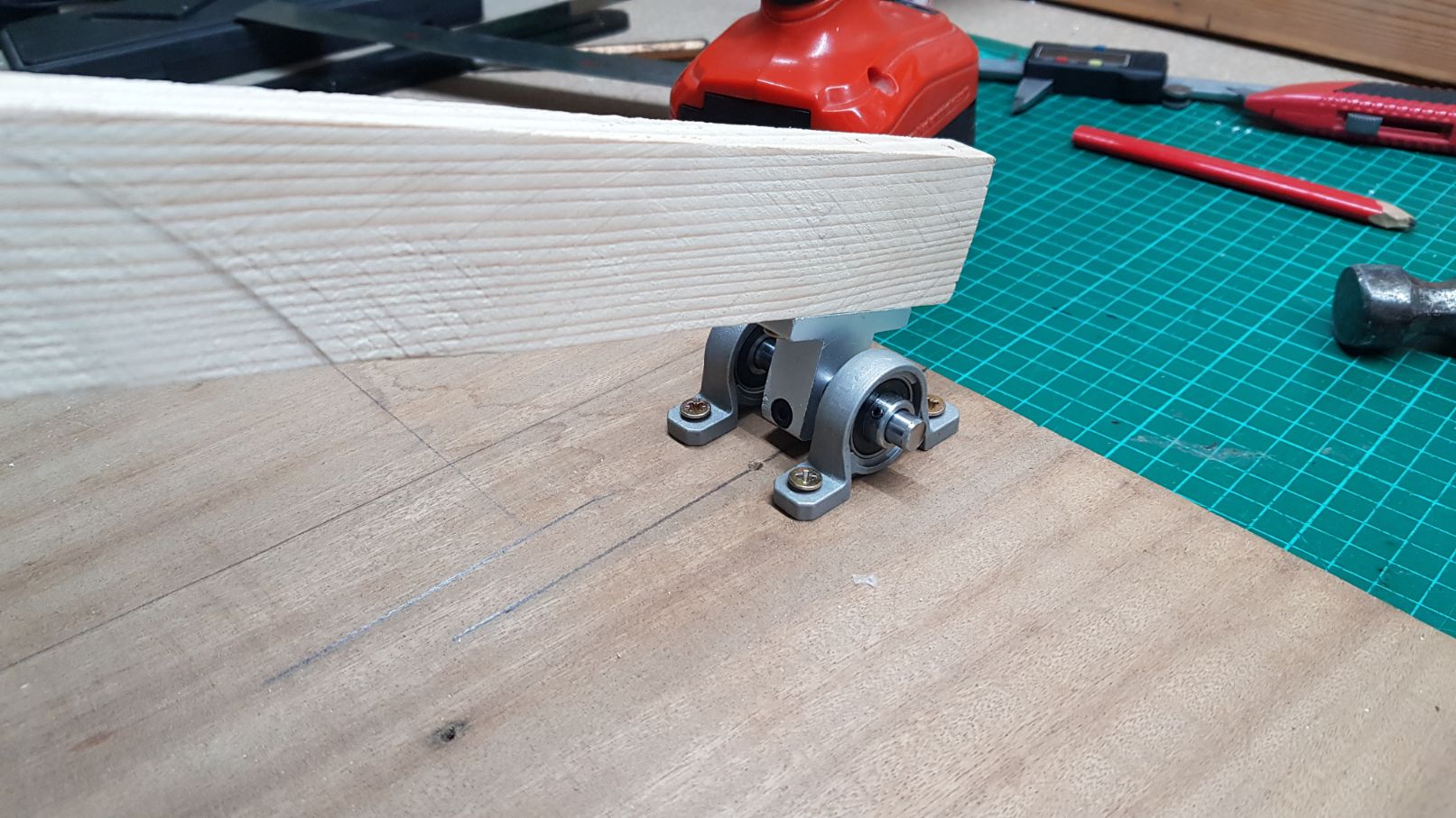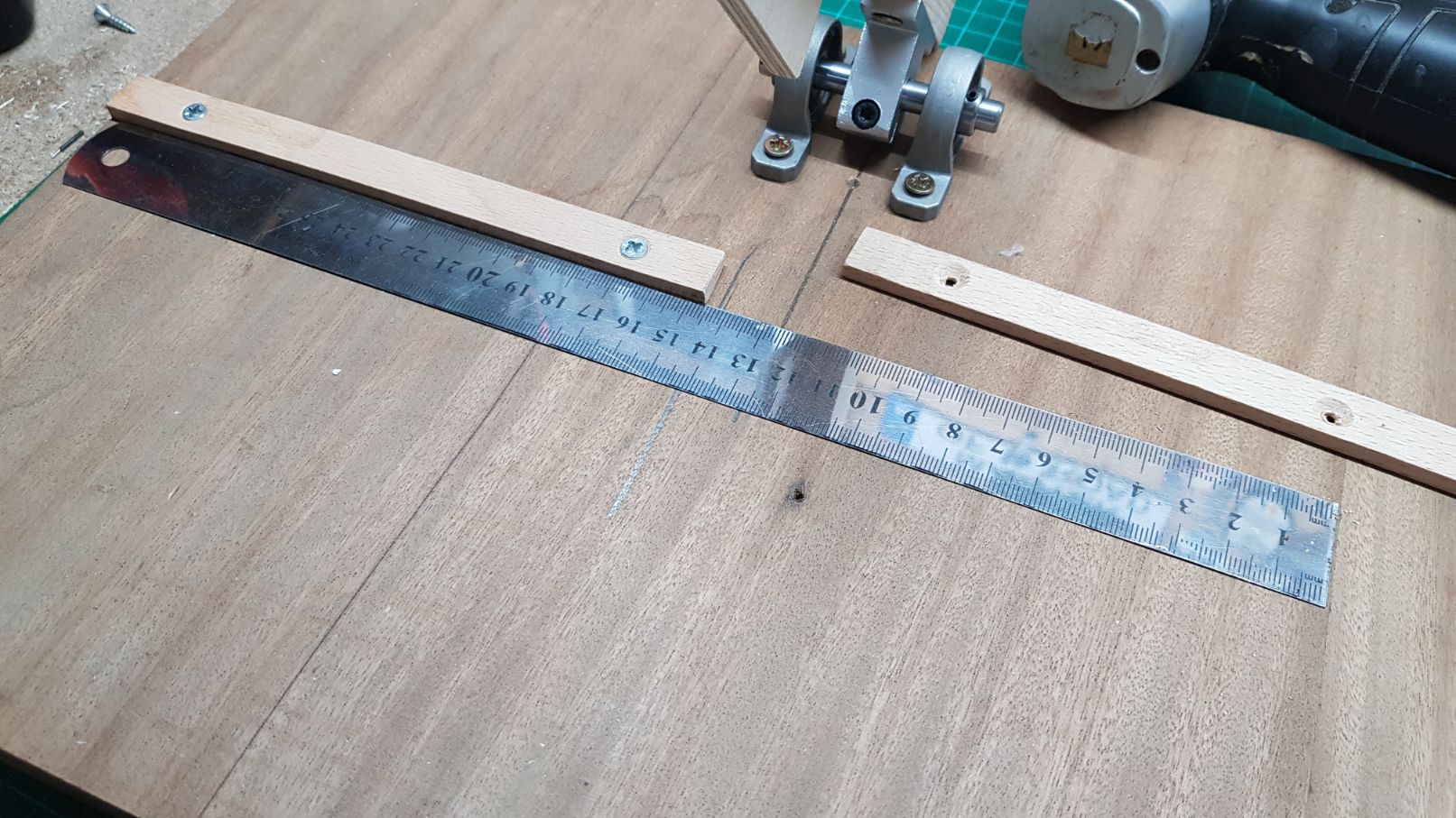I then drew a line using the blade mount as a straight edge.