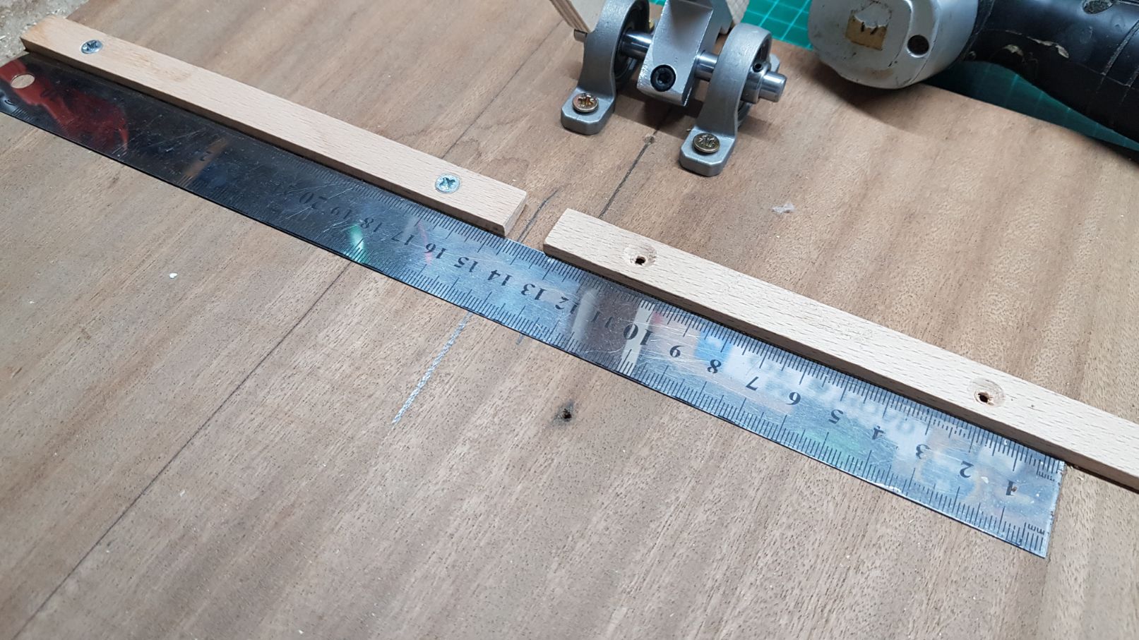 I marked where I wanted this installed on the wood surface and prepared some holes for the linear rail shaft supports.