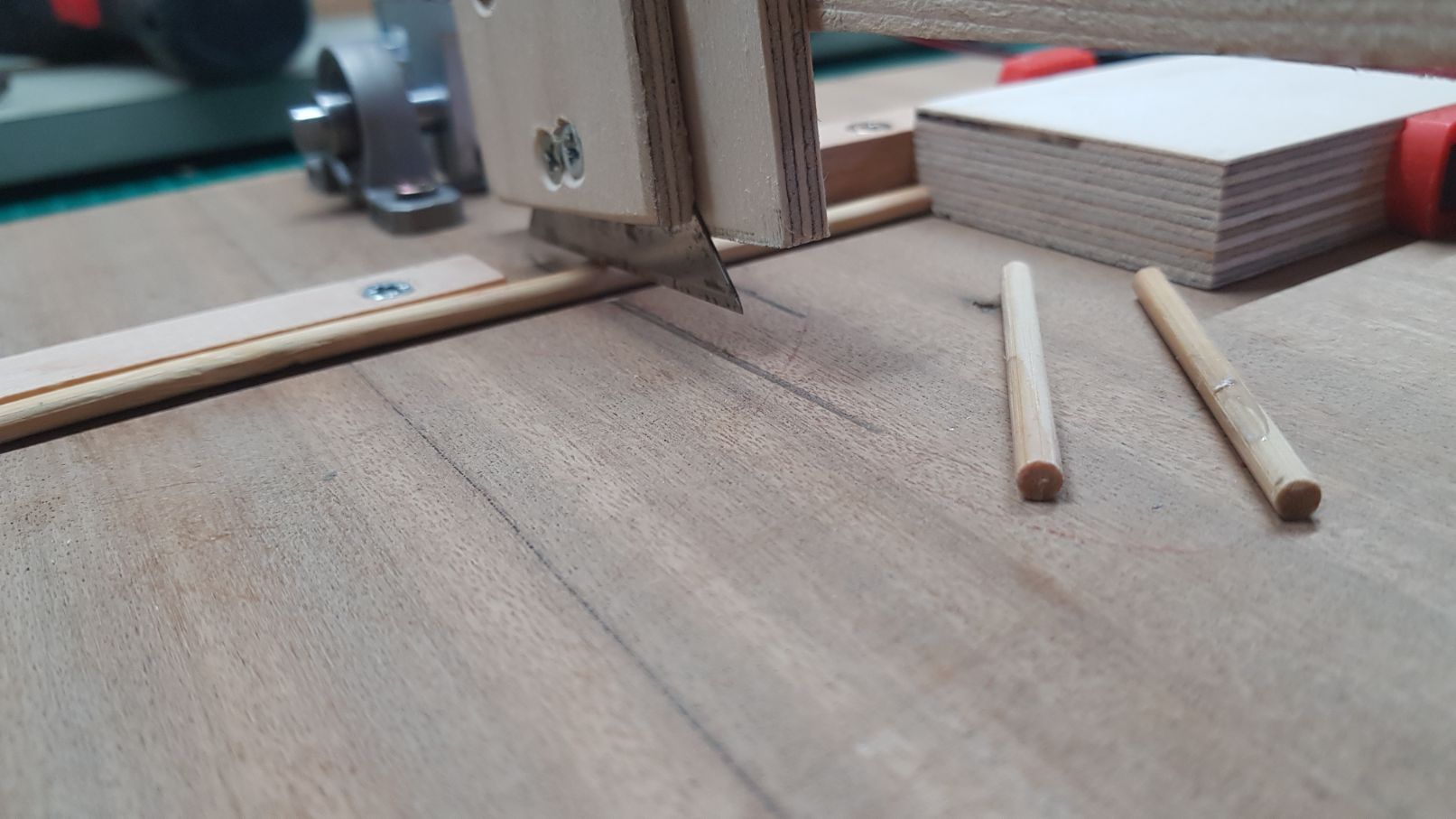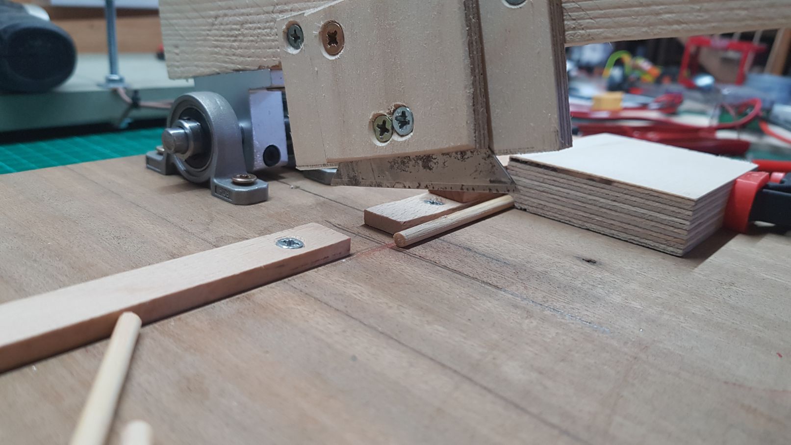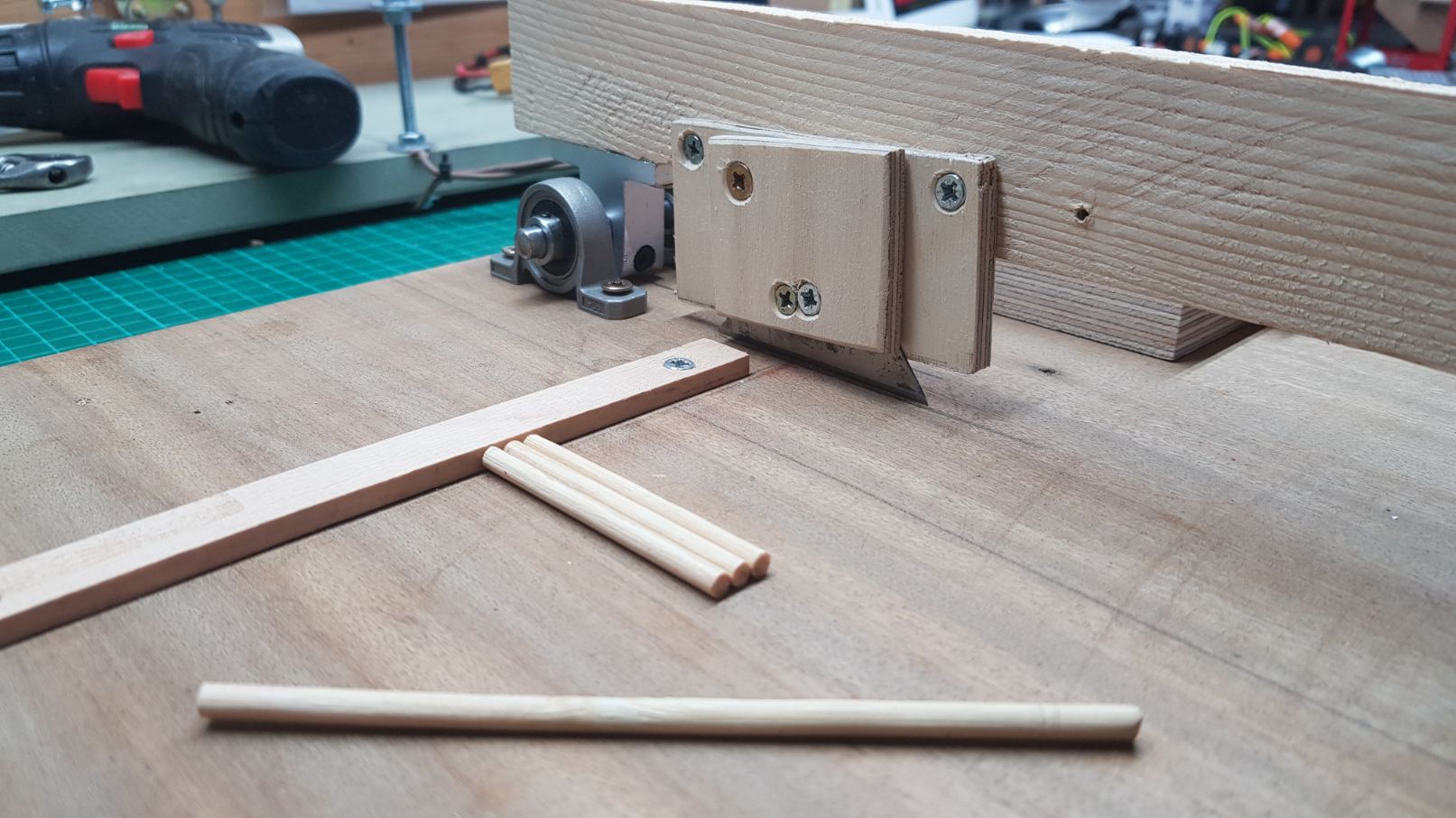 and then lowered the lever and attached a small piece of wood which I kept flat to the base. This will be what will hold the blade.