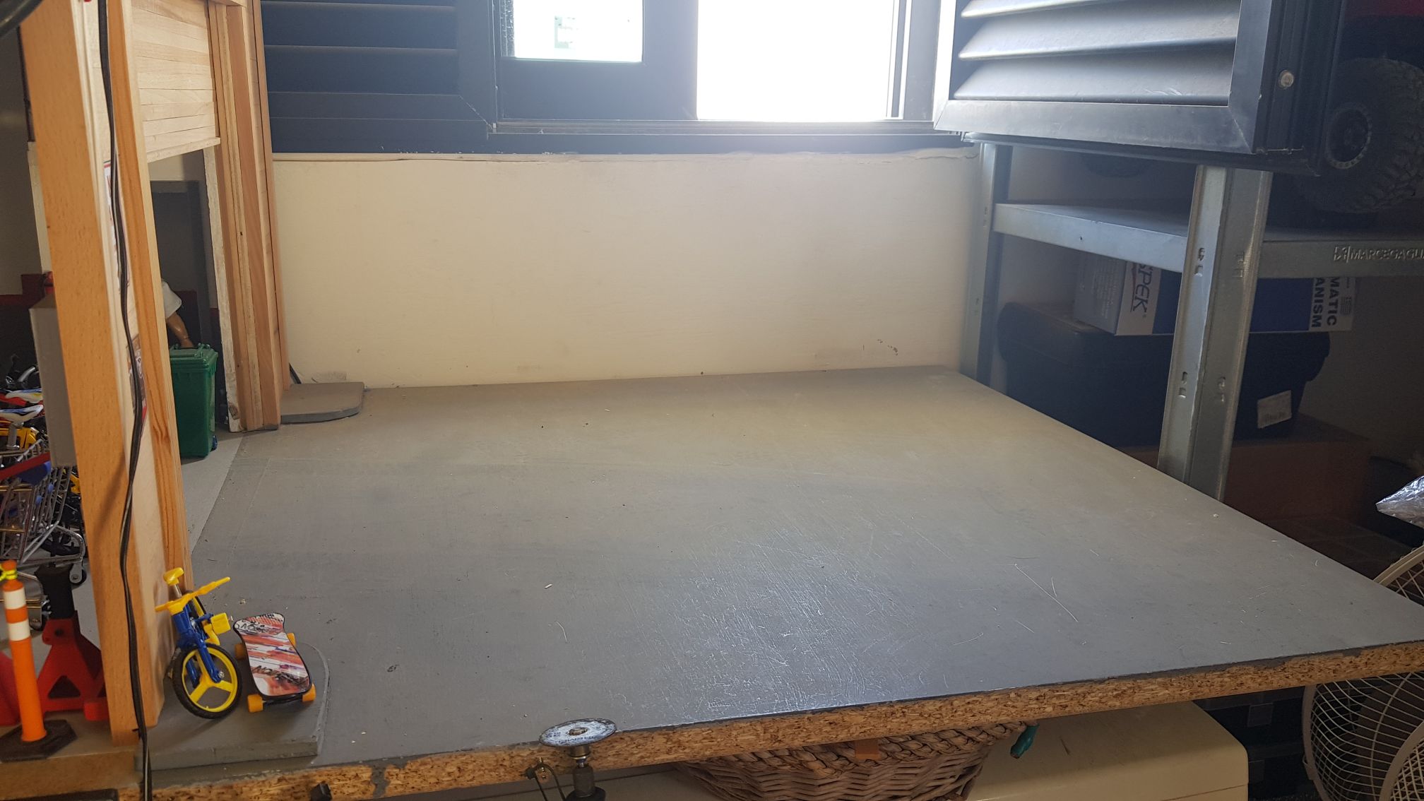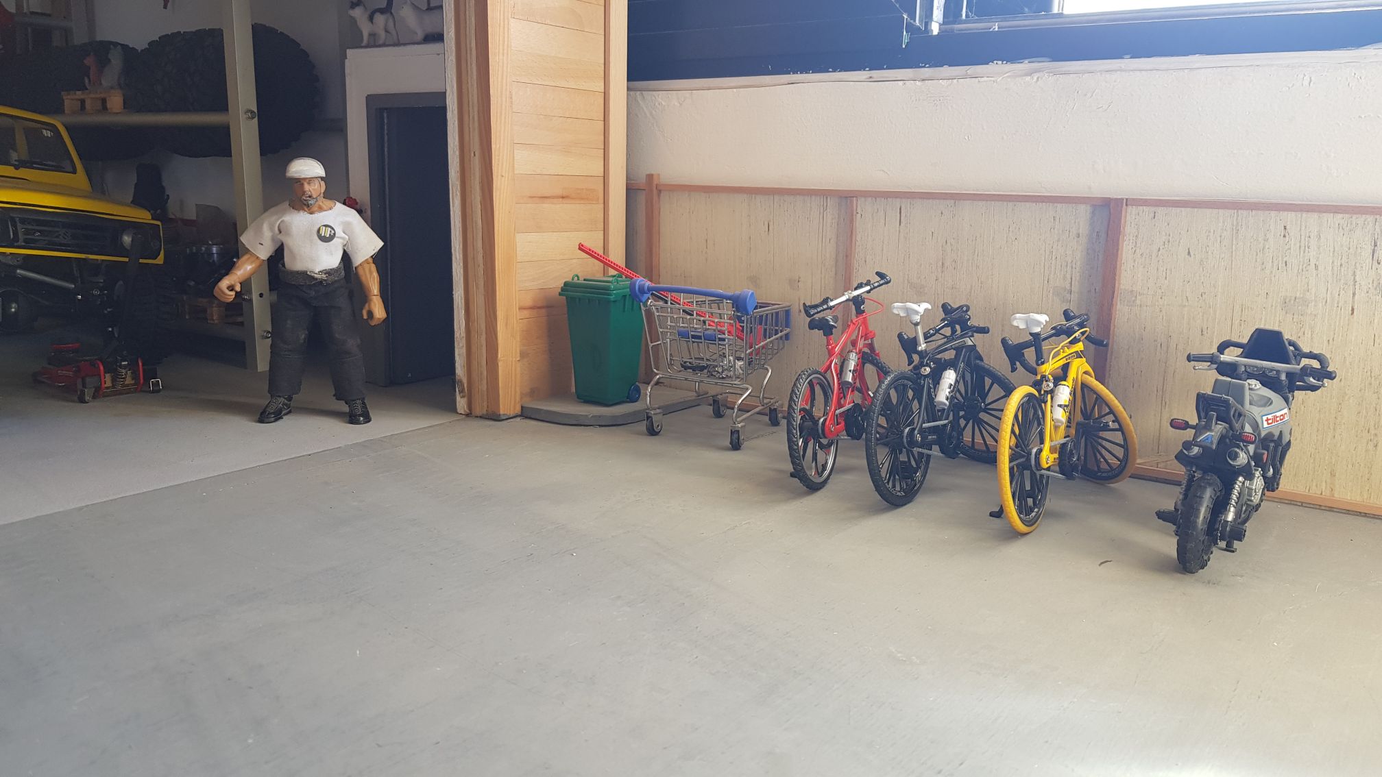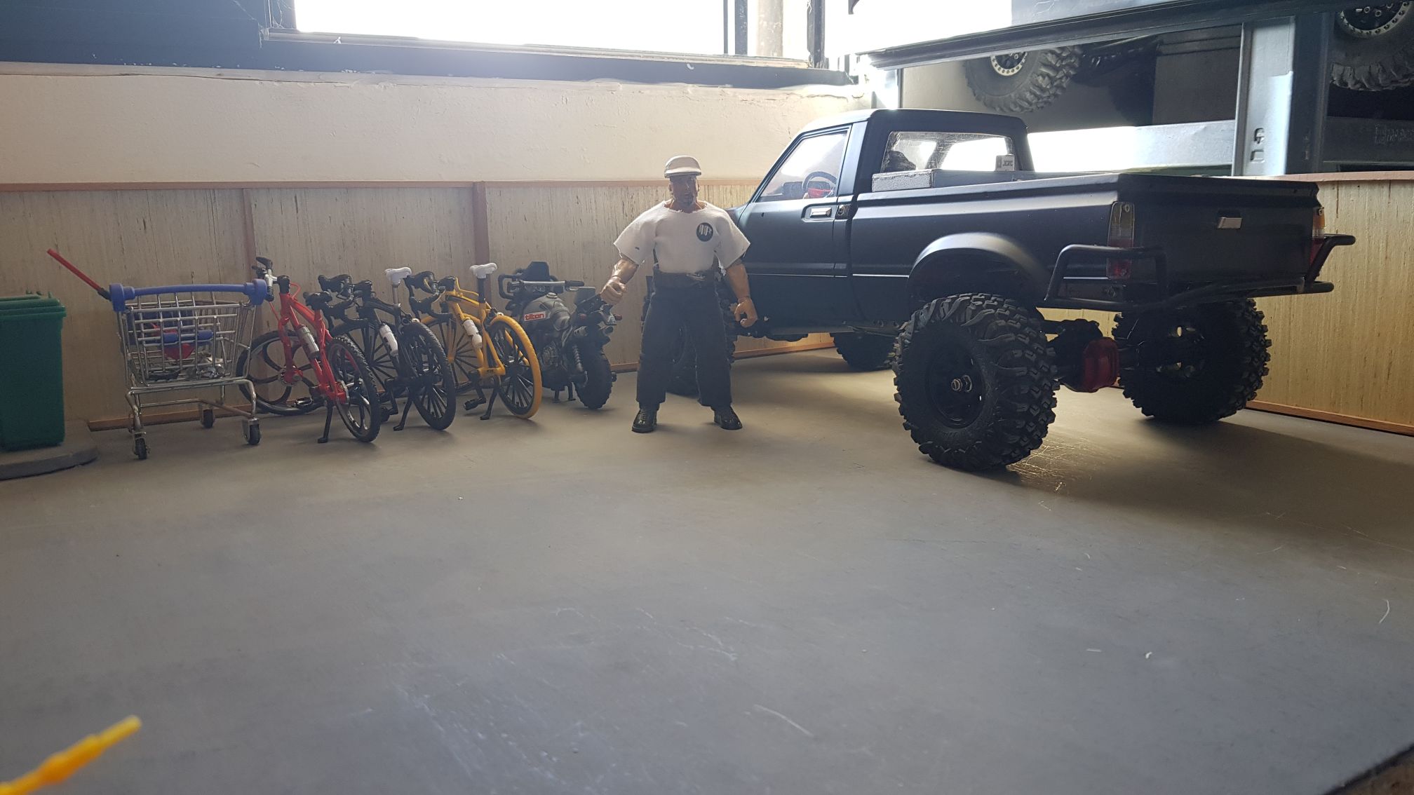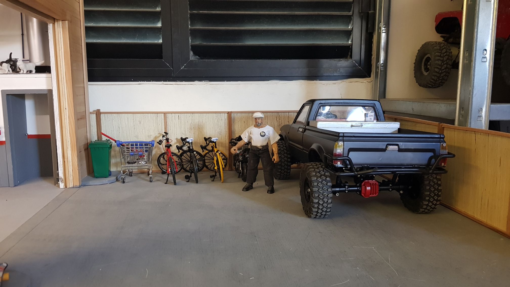 So far there's just a fence. I will keep adding more and more scale stuff to make it look more like a scale garage car park