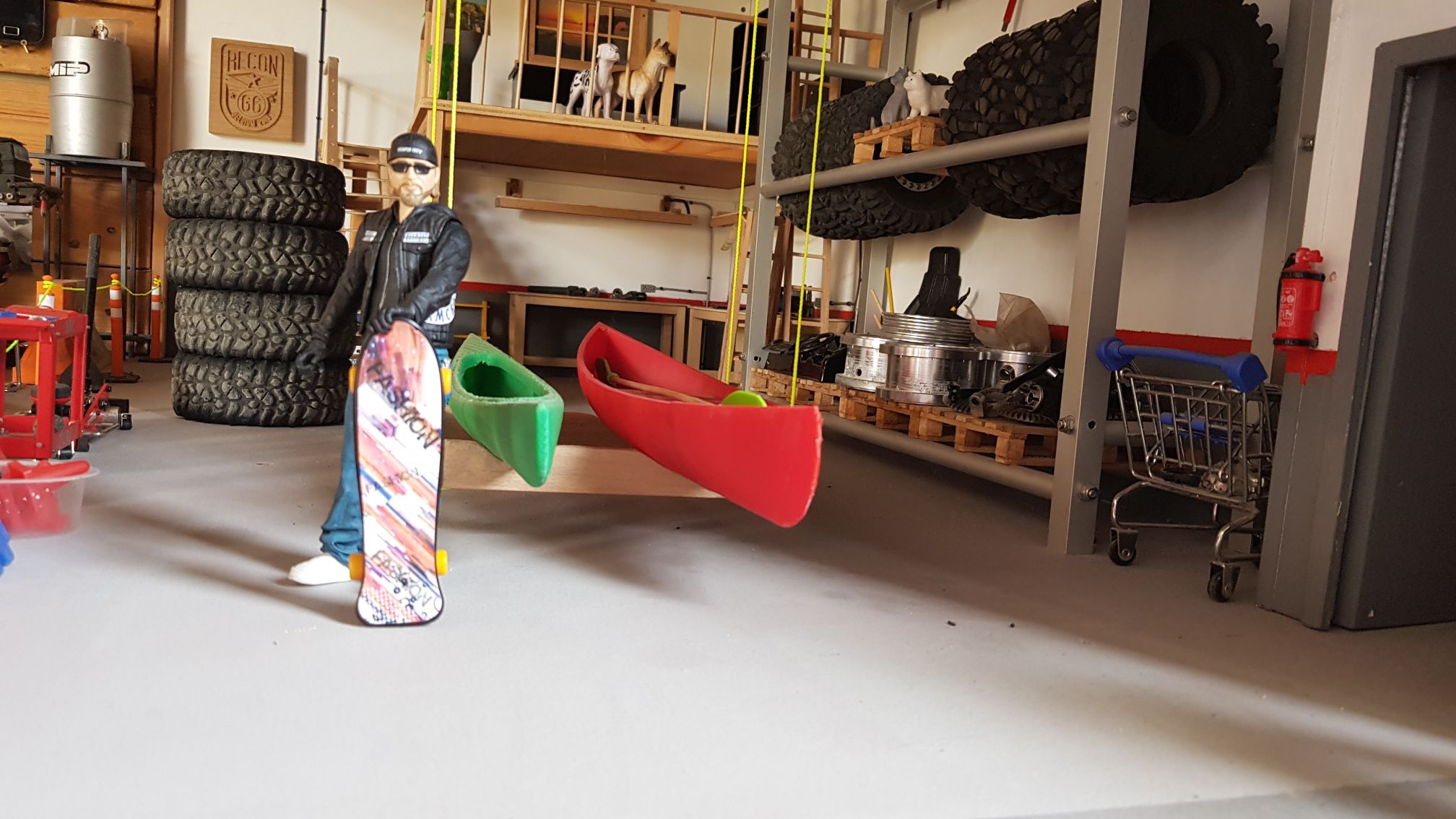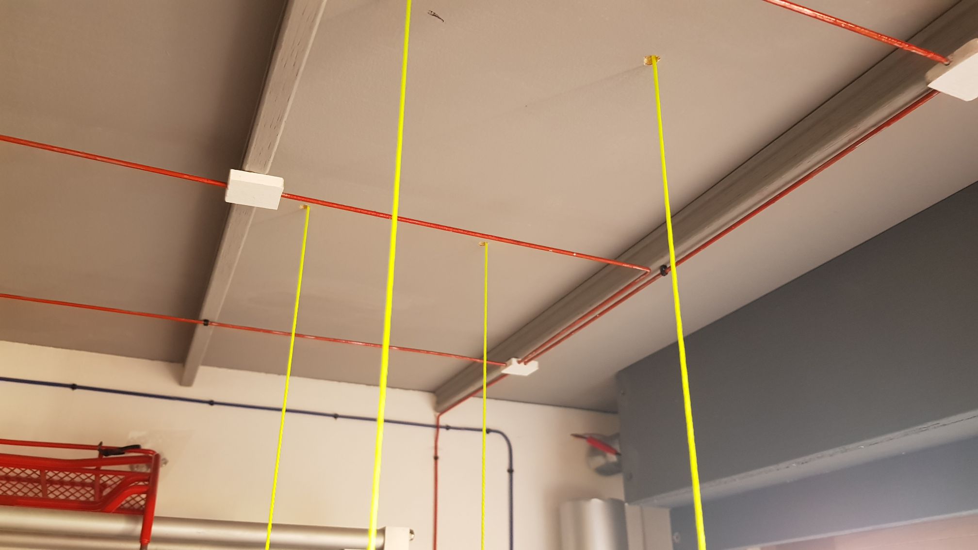 String entering the garage from the ceiling   Hoist at the lower position   Hoist at the "stored away" position   Some random guy showing off in front of the camera    If you have not yet watched the video, do it now HERE | |||