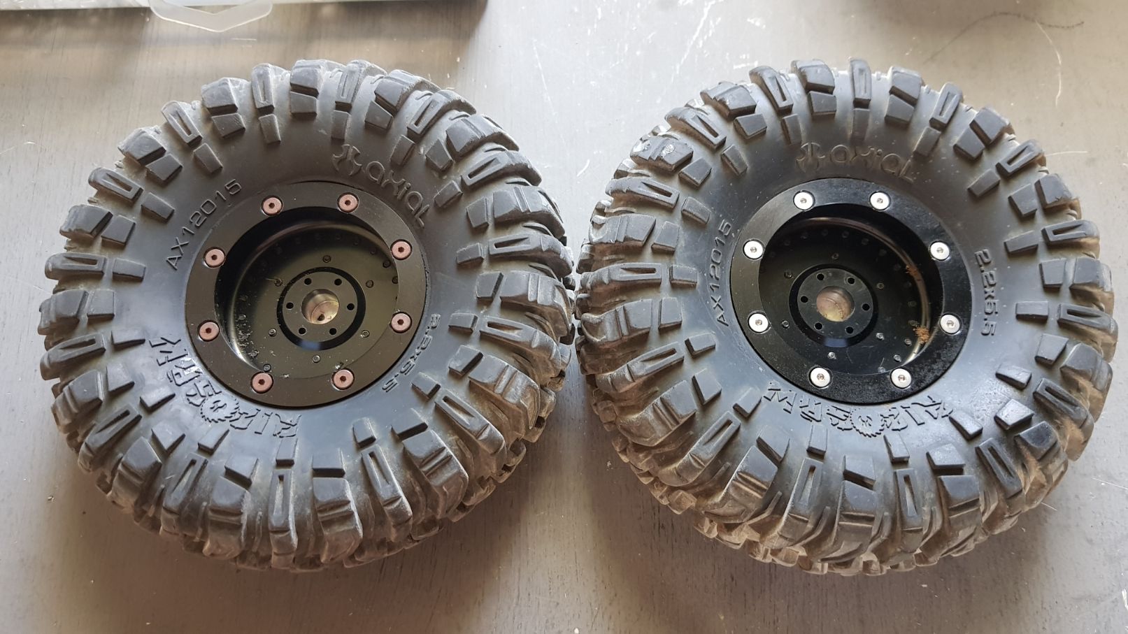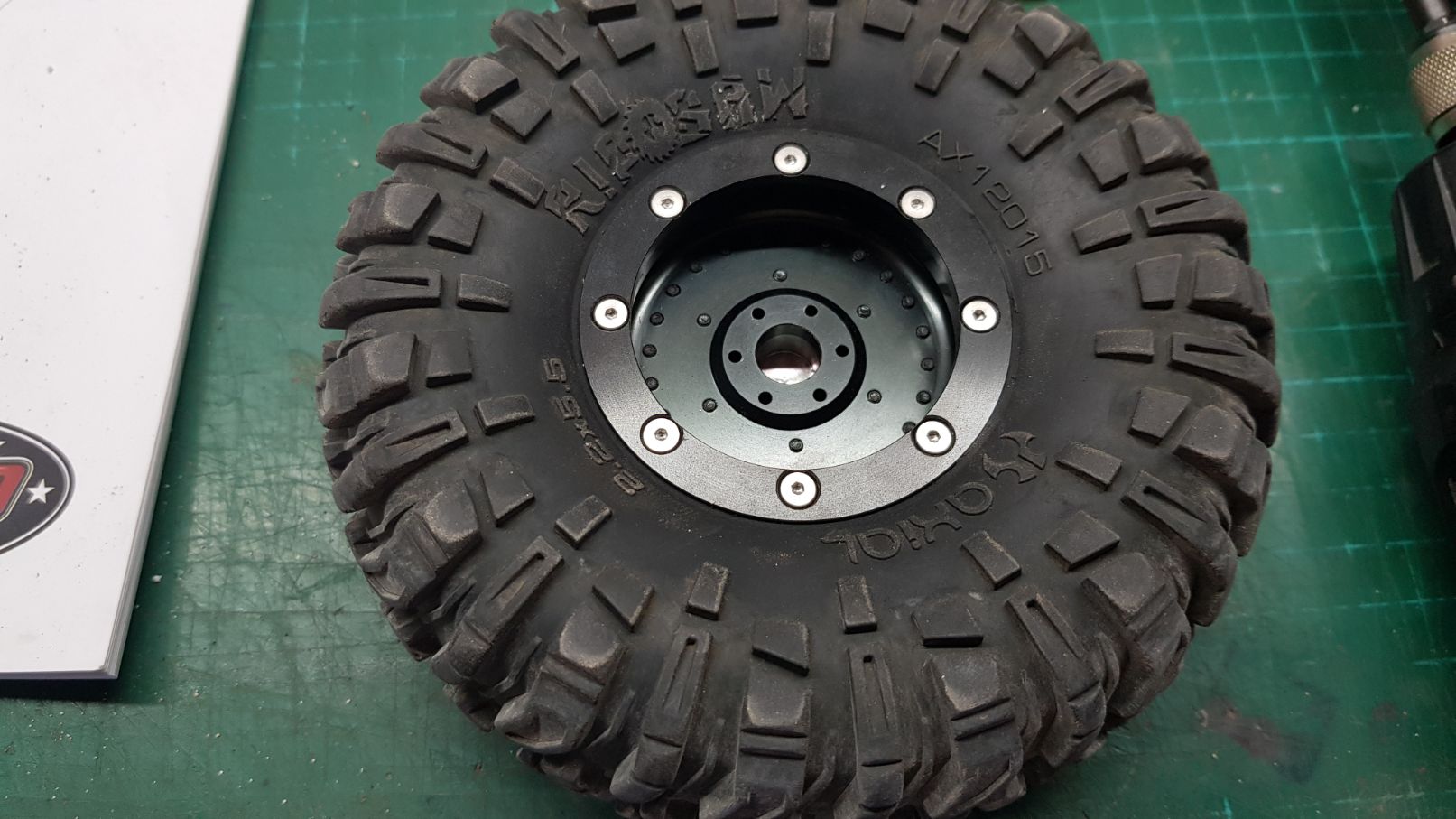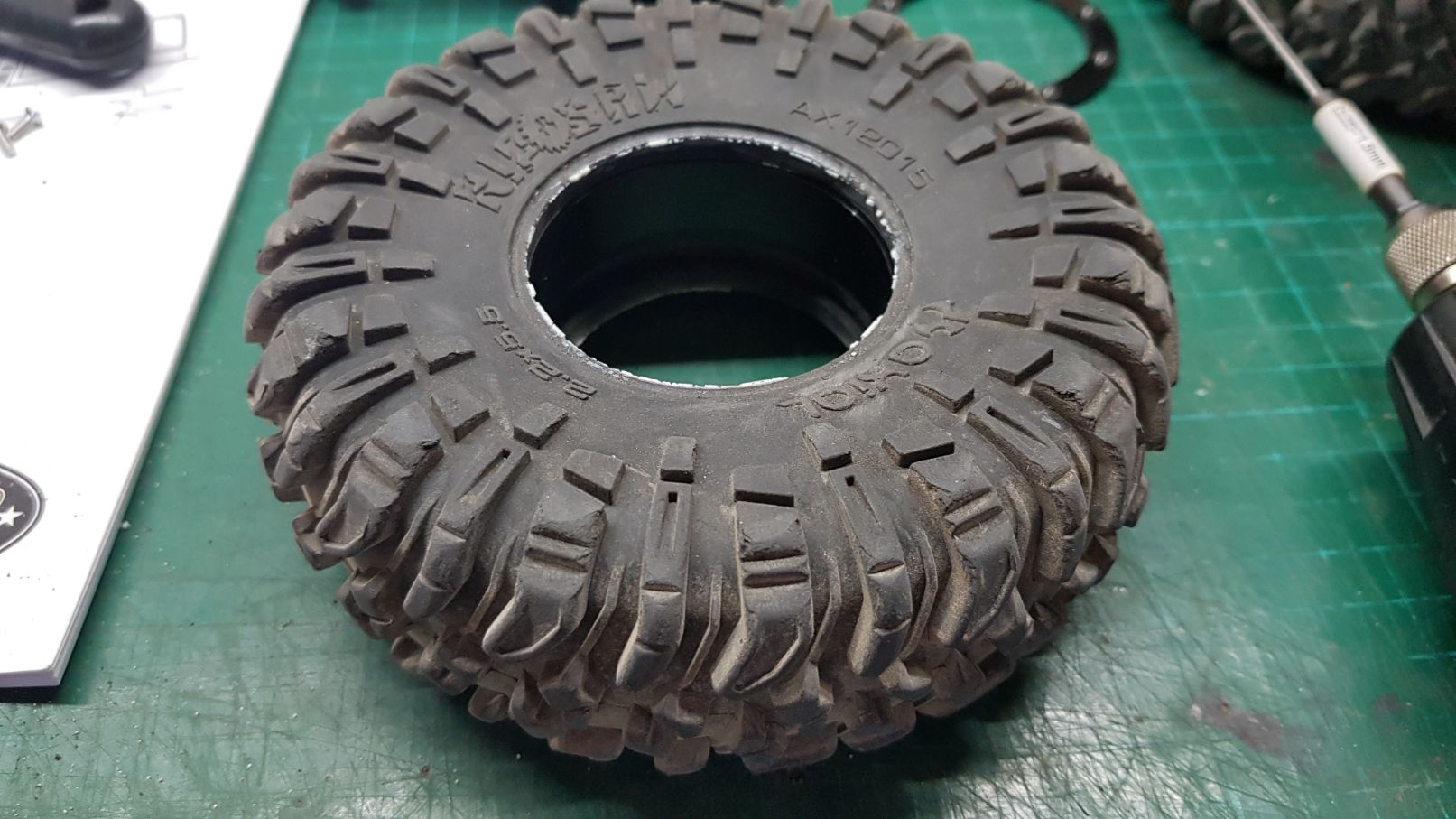 and fitting them inside the 2.2 tyres. Then I inserted the inner alloy ring.