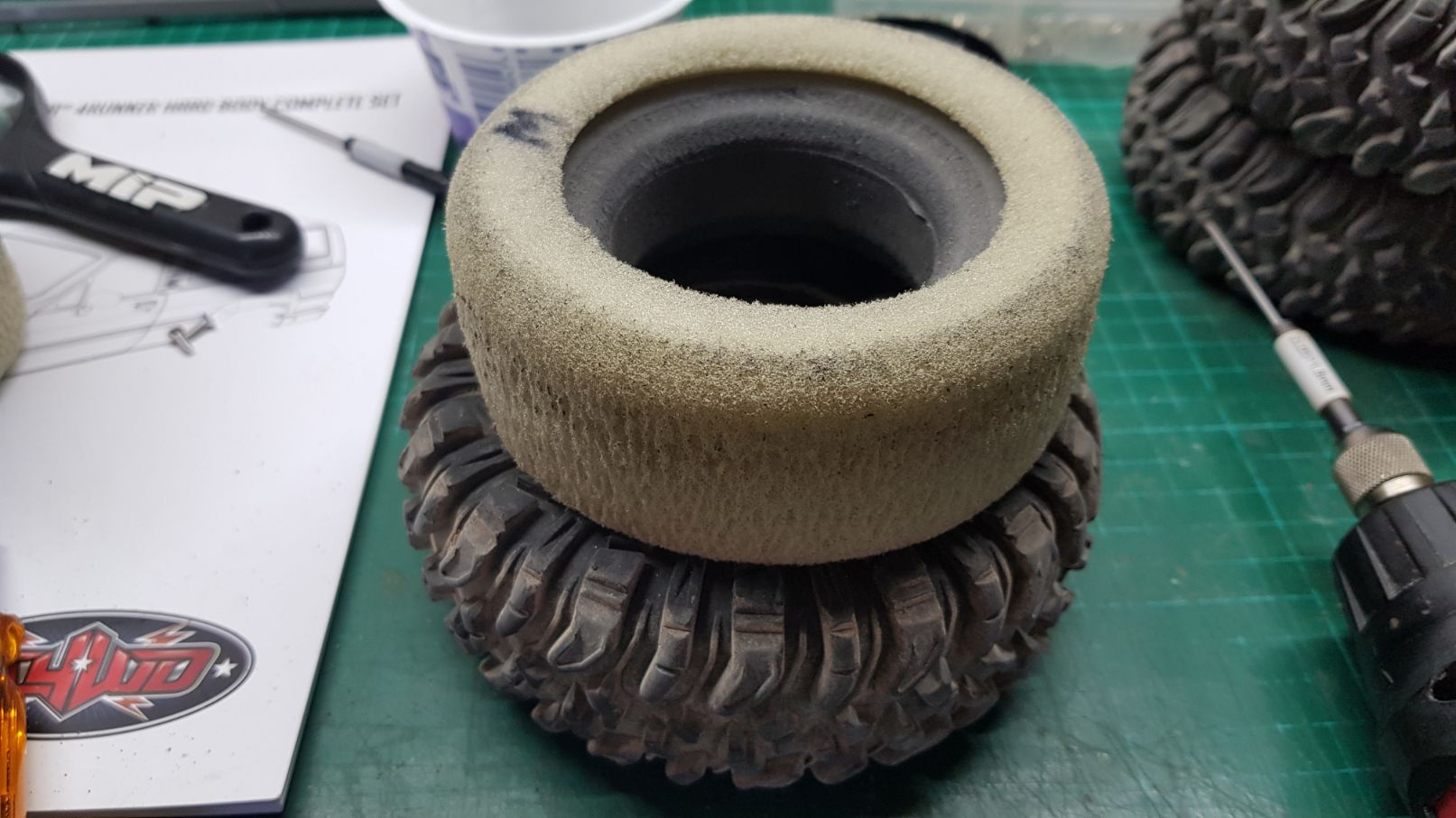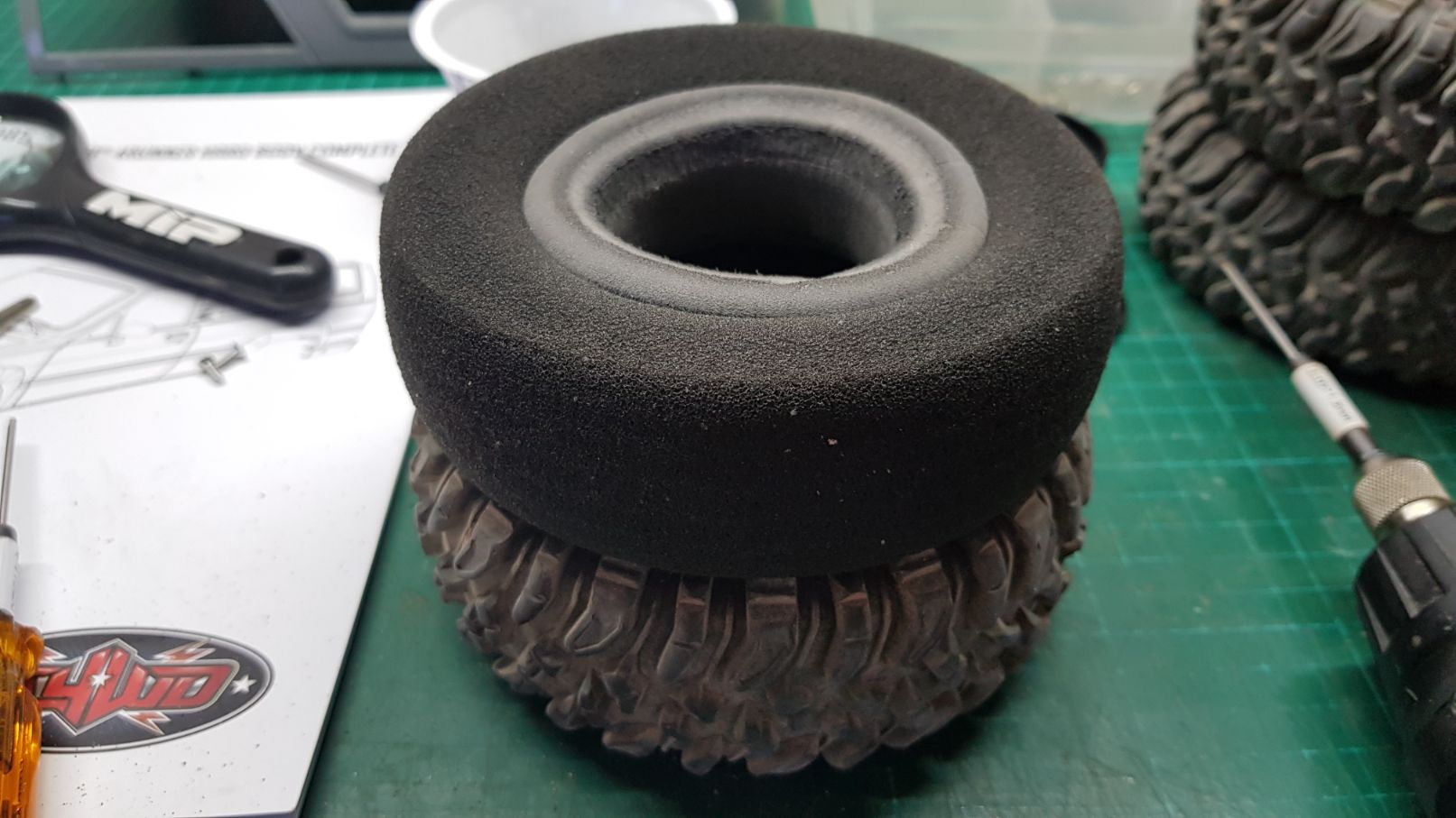 So before doing this, i remembered how bad the foams in the rear 4 wheels were. The last video was clear proof that something needed to be done. I removed the old foams. These foams came with the stock tyres that came with the Wraith.