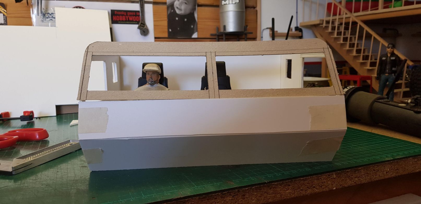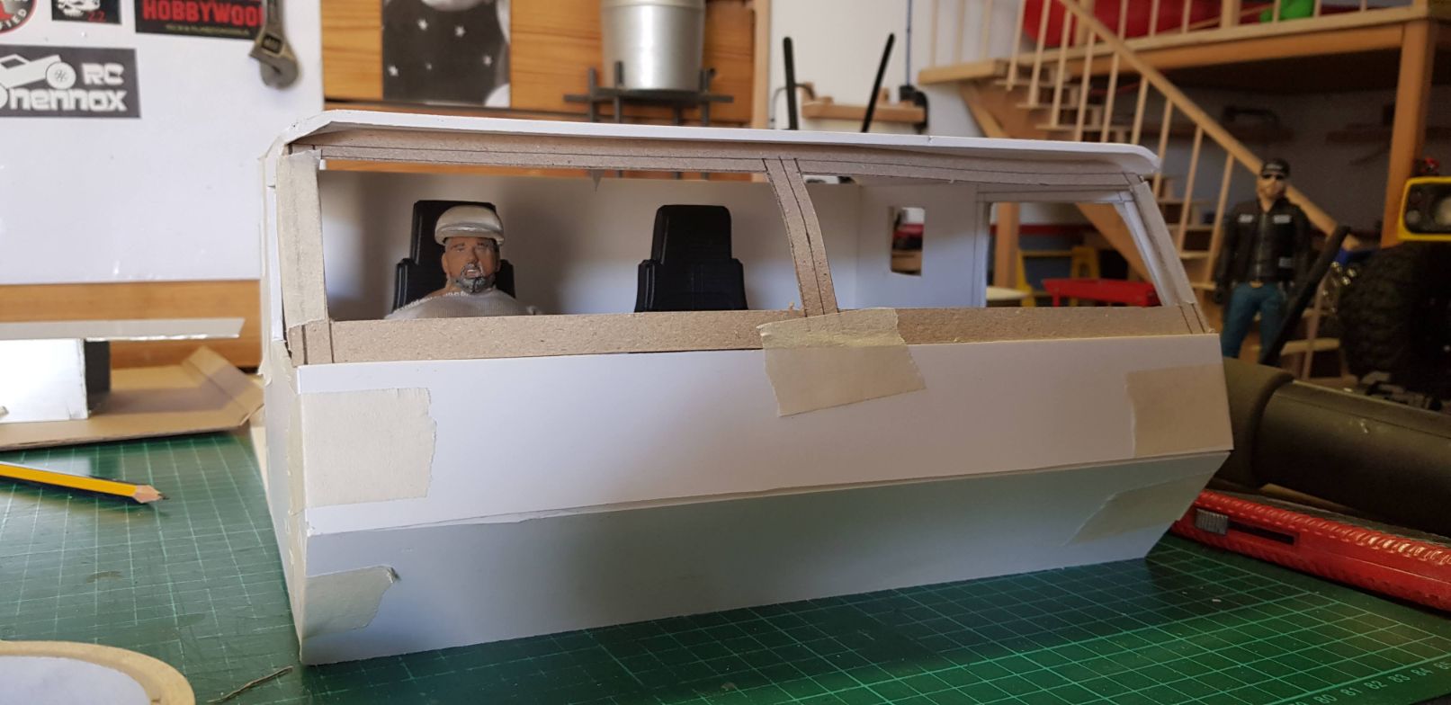 | Some more progress today. Really enjoying myself doing this   So, as you can see, I cut the roof and gave the edges a bit of a twist, just for style and to remove some of the straight edges and box look.   The next step was the windshield panel. Not an easy one as it has the fit the roundness of the roof edges.