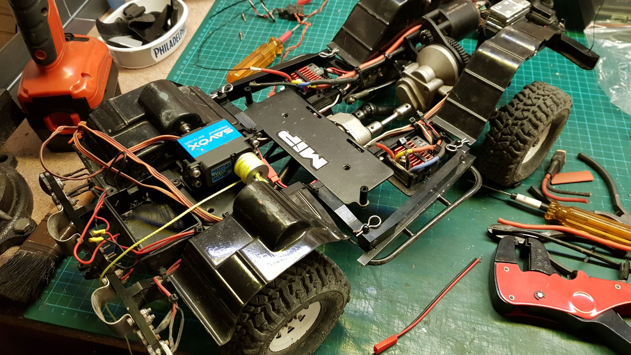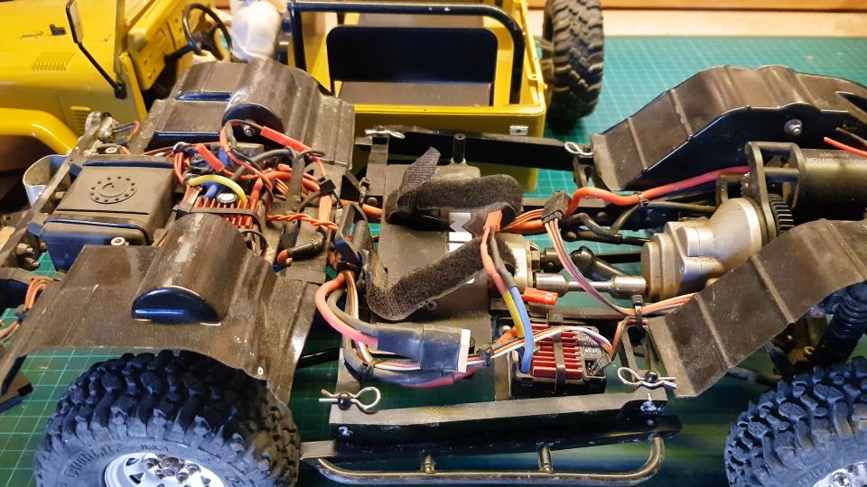 Here you can see both ESC and the servo winch in place. The wiring is in progress.